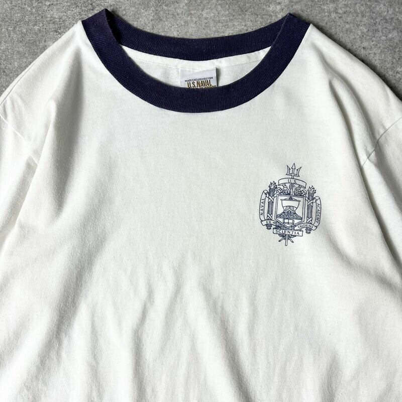 90s USA製 USNA プリント 半袖 リンガー Tシャツ M / 90年代 アメリカ製 USN NAVY ミリタリー アカデミー 米軍 シングル ステッチ