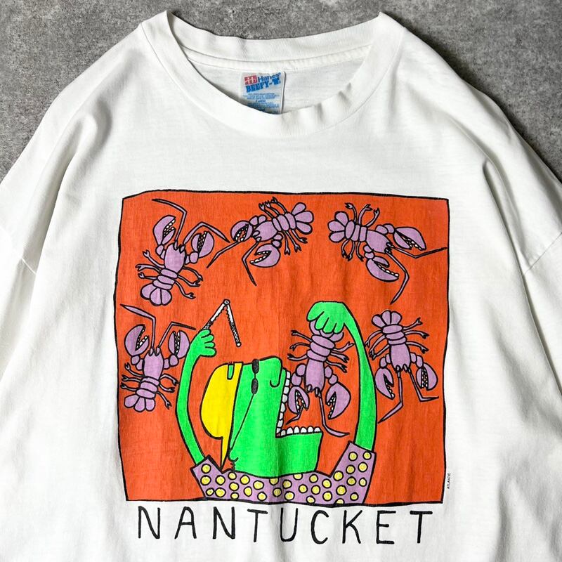 90s USA製 ロブスター イラスト アート プリント 半袖 Tシャツ XL / 90年代 アメリカ製 オールド シングル ステッチ ホワイト 白