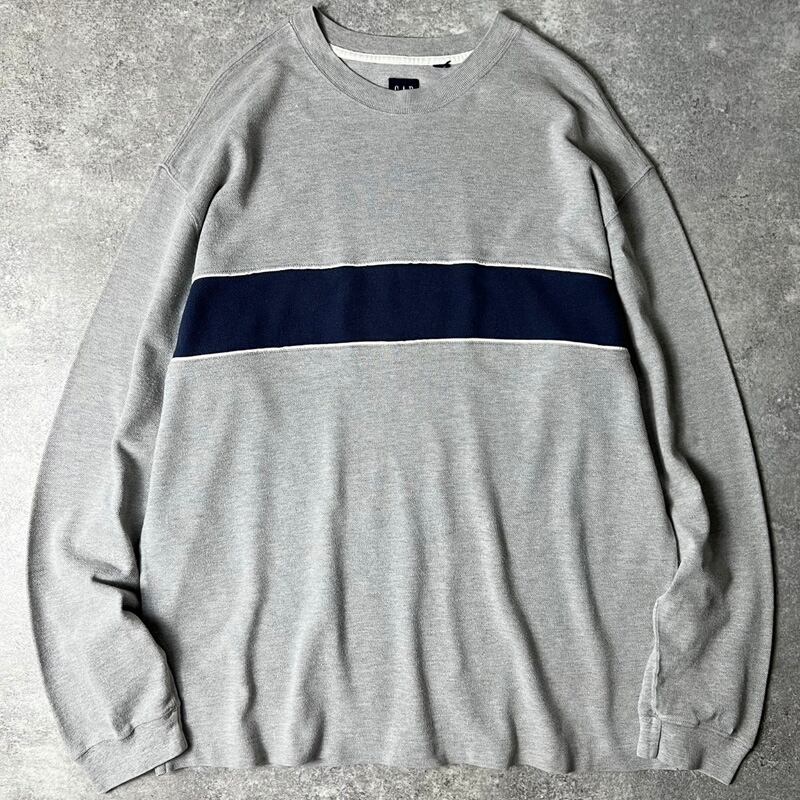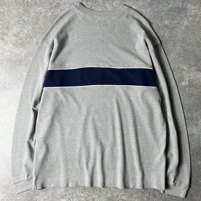90s GAP 2トーン 切替 コットン 鹿の子 長袖 Tシャツ / 90年代 オールド ギャップ カットソー ロンT ボーダー グレー ネイビー