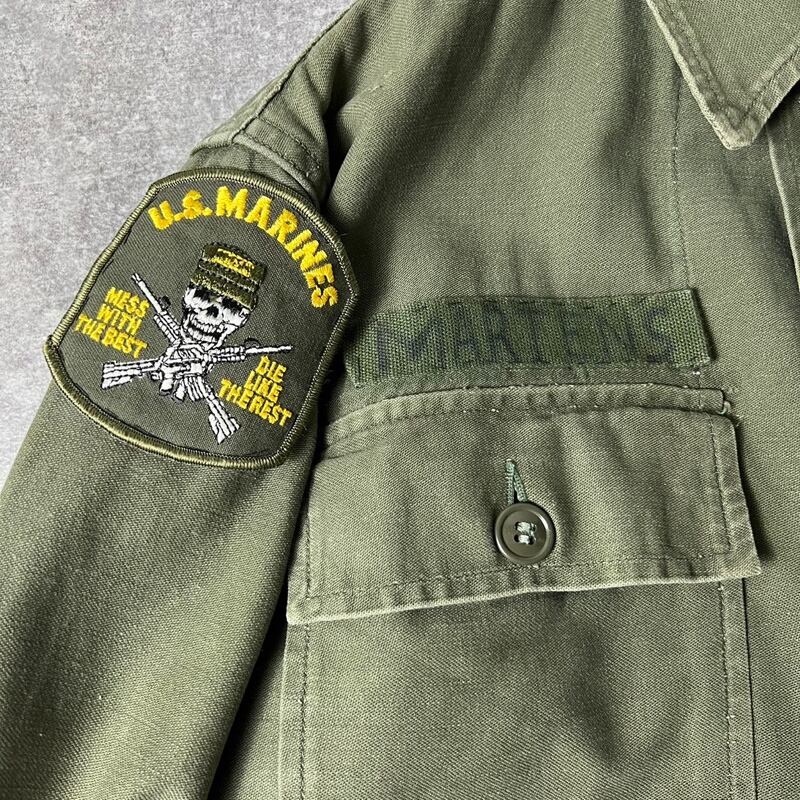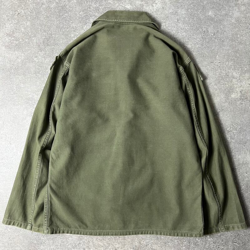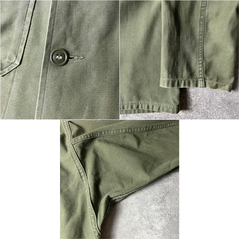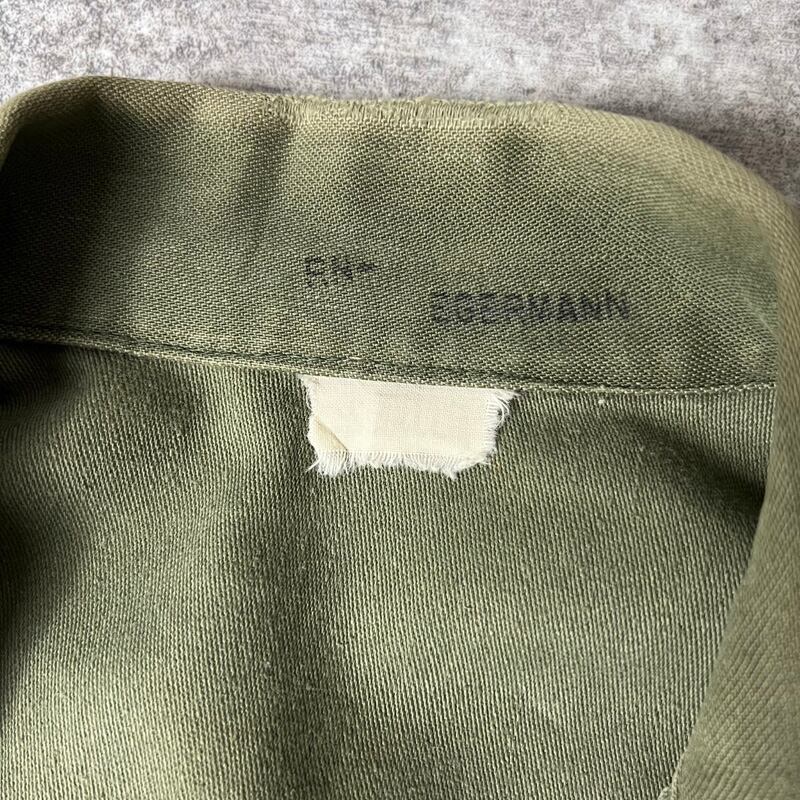 60s US ARMY 米軍実物 OG-107 コットン サテン ユーティリティ シャツ S 1st 筒袖 後期 / 60年代 ビンテージ ミリタリー ジャケット USMC