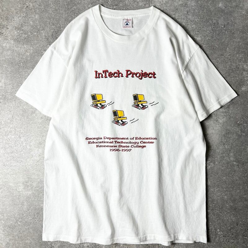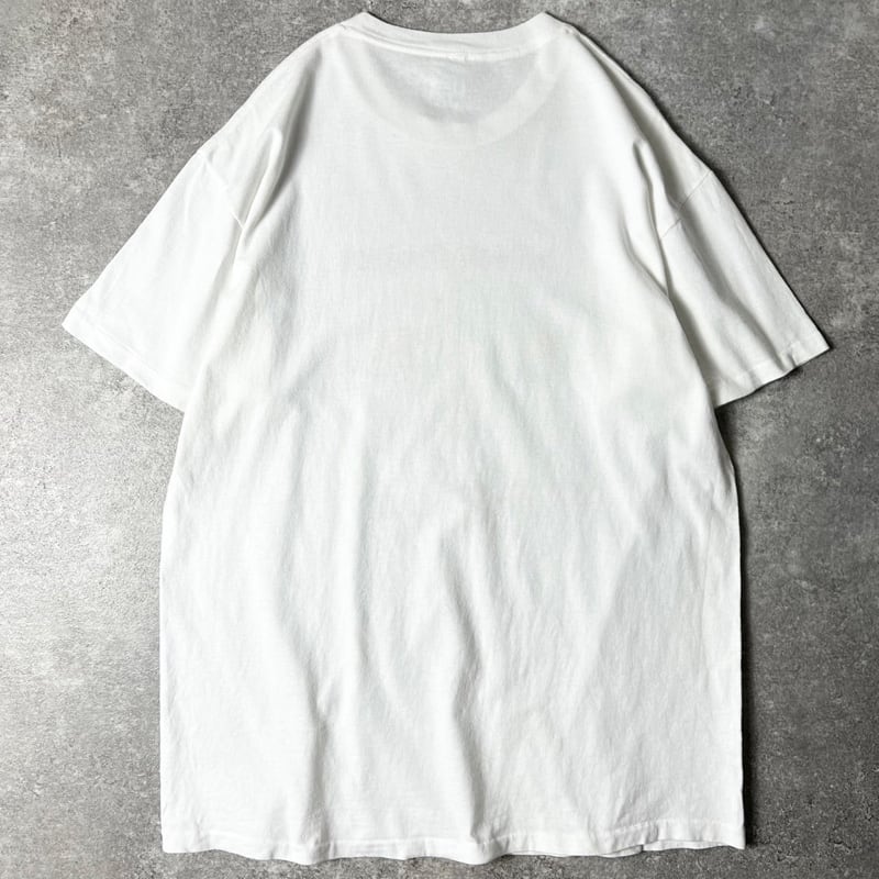 90s USA製 カレッジ キャラクター イラスト プリント 半袖 Tシャツ L / 90年代 アメリカ製 オールド シングル ステッチ ホワイト 白