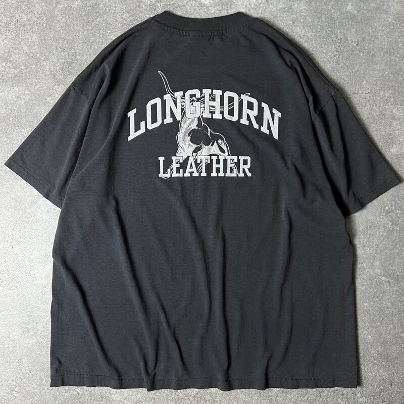 90s USA製 LONGHORN LEATHER 企業物 両面 プリント 半袖 Tシャツ XL / 90年代 アメリカ製 オールド 企業 シングル ステッチ 墨黒