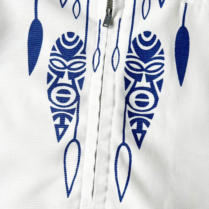 60s Kalanii トライバル柄 フルジップ コットン ピケ オープンカラー ハワイアン シャツ / 60年代 ビンテージ アロハ 開襟 ボックス ポリネシアン