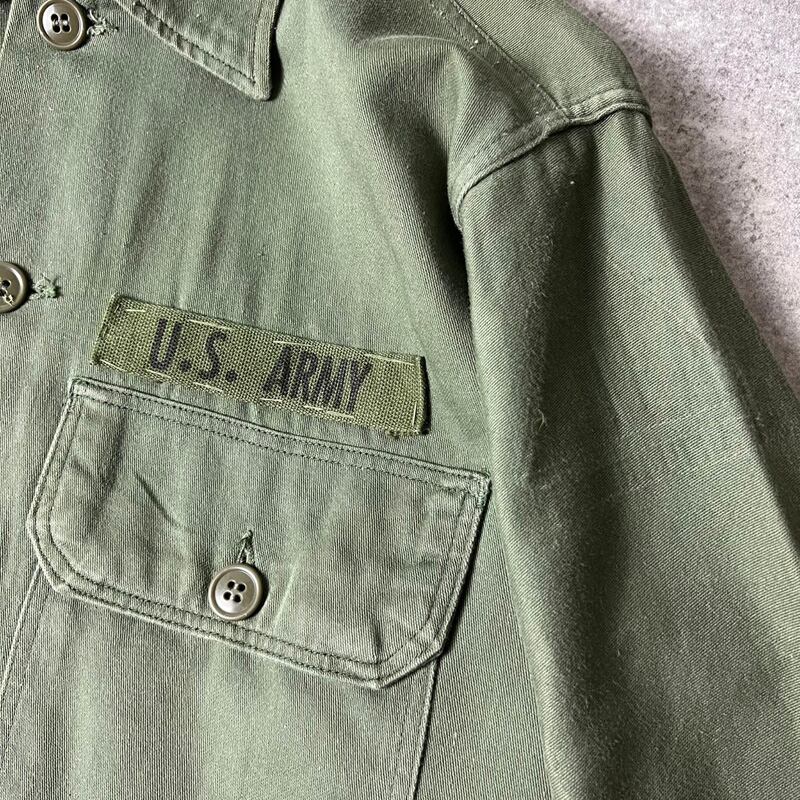 60s US ARMY OG-107 コットン サテン ユーティリティ シャツ 3rd 筒袖 / 60年代 ビンテージ ミリタリー ジャケット