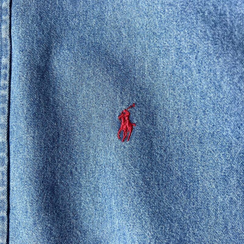 90s RALPH LAUREN 長袖 コットン デニム ボタンダウン シャツ XL / 90年代 POLO ポロ ラルフローレン ポニー刺繍 BLAIRE