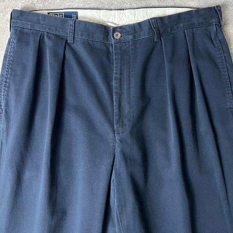 90s POLO RALPH LAUREN 2タック コットン チノ パンツ 36 29 / 90年代 オールド ポロ ラルフローレン チノパン ポロチノ ANDREW 紺
