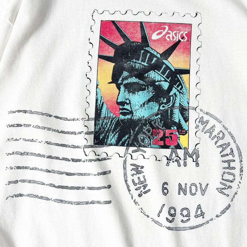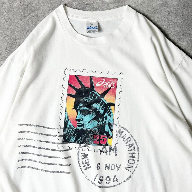 90s USA製 asics 1994 ニューヨークシティ マラソン 25周年 プリント 半袖 Tシャツ XL / 90年代 アメリカ製 オールド アシックス シングル 自由の女神
