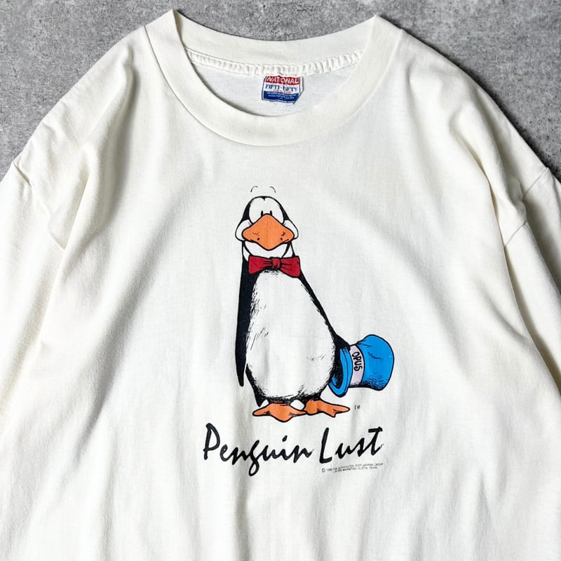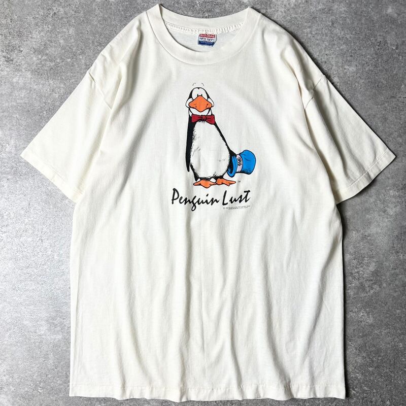 80s ペンギン キャラクター イラスト プリント 半袖 Tシャツ XL / 80年代 ビンテージ シングル ステッチ キャラT コミック アニマル