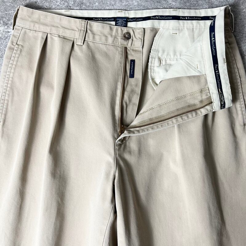 90s POLO RALPH LAUREN 2タック コットン チノ パンツ 34 32 / 90年代 オールド ポロ ラルフローレン チノパン ポロチノ ANDREW カーキ