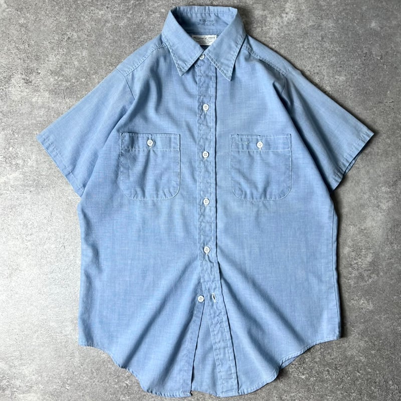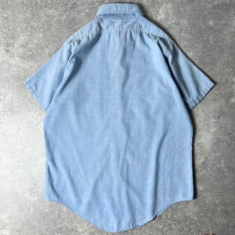 70s Unknown 半袖 シャンブレー シャツ M / 70年代 ビンテージ ブルー アメリカ製 PERMANENT PRESS 無地