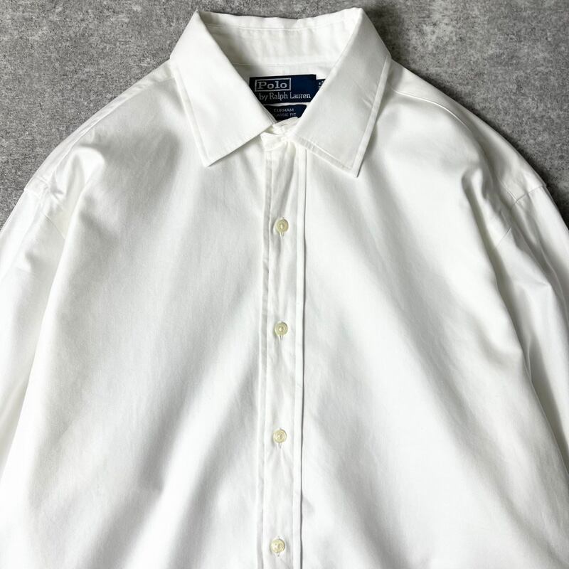 90s POLO RALPH LAUREN ダブルカフス 長袖 コットン ドレス シャツ 16 1/2 / 90年代 ポロ ラルフローレン CURHAM 白 ホワイト 無地