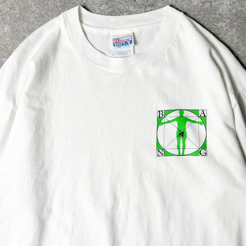 90s BANG ウィトルウィウス的人体図 プリント 半袖 Tシャツ L / 90年代 アメリカ製 オールド シングル ステッチ 白