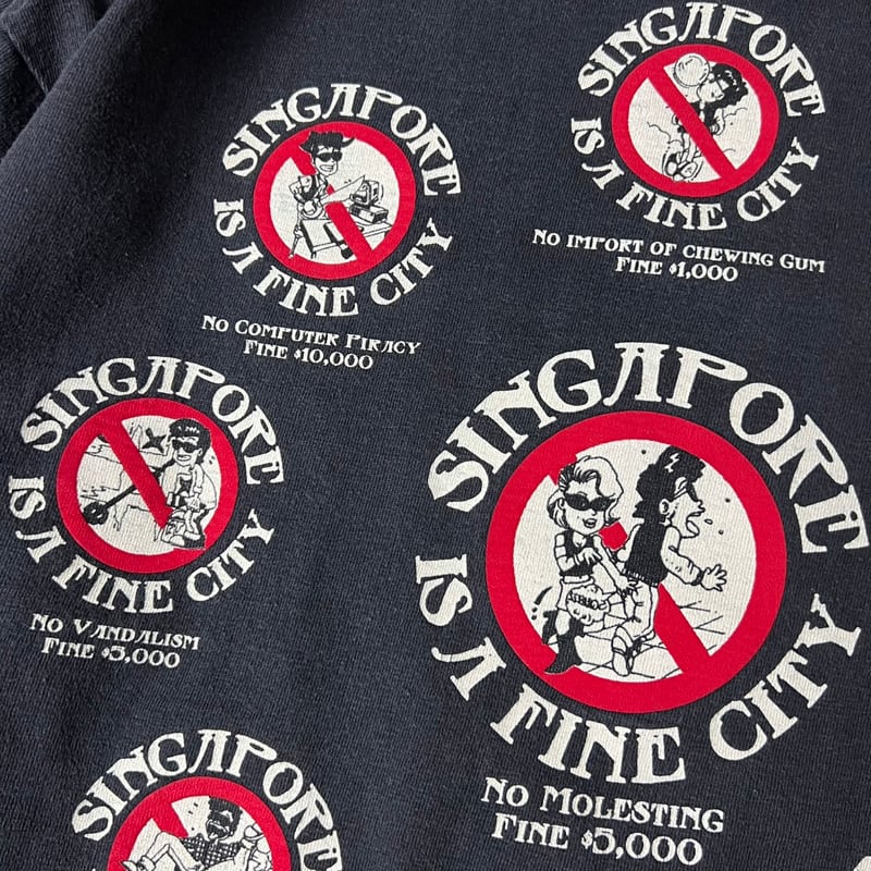 90年代のSINGAPORE IS A FINE CITYプリントTシャツです。