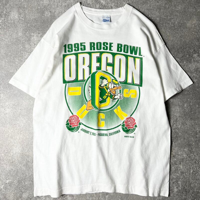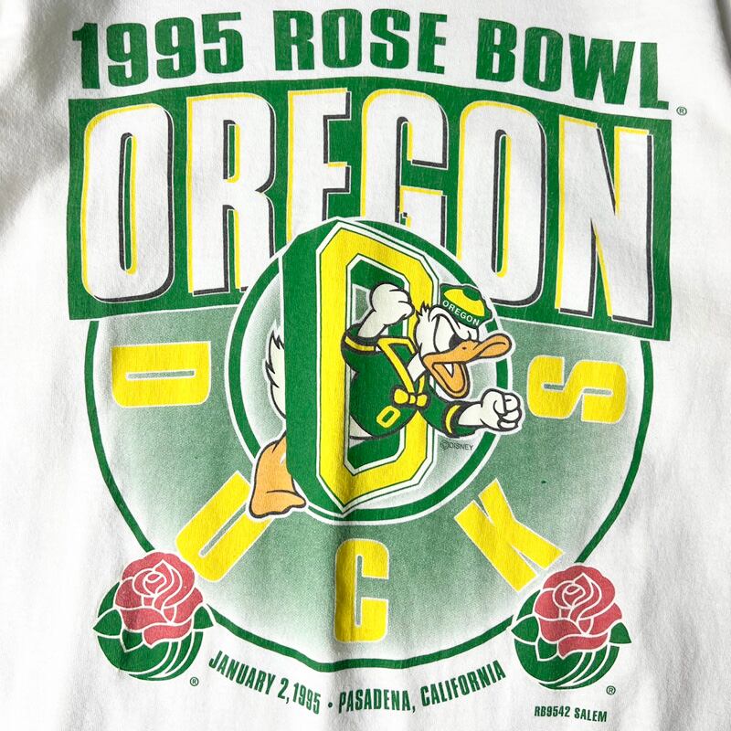 90s USA製 ディズニー オフィシャル ドナルド 1995 ローズボウル プリント 半袖 Tシャツ L / 90年代 アメリカ製 ドナルドダック シングル