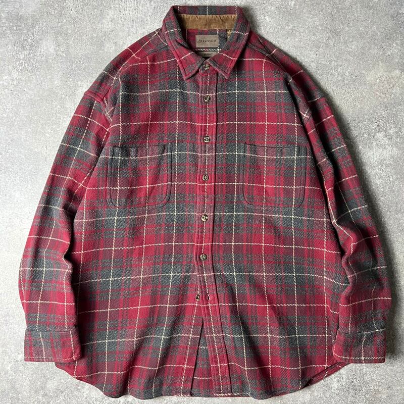 90s インド綿 ST JOHN'S BAY チェック 長袖 ヘビー フランネル シャツ XL / 90年代 オールド JCPenney JCペニー ネルシャツ