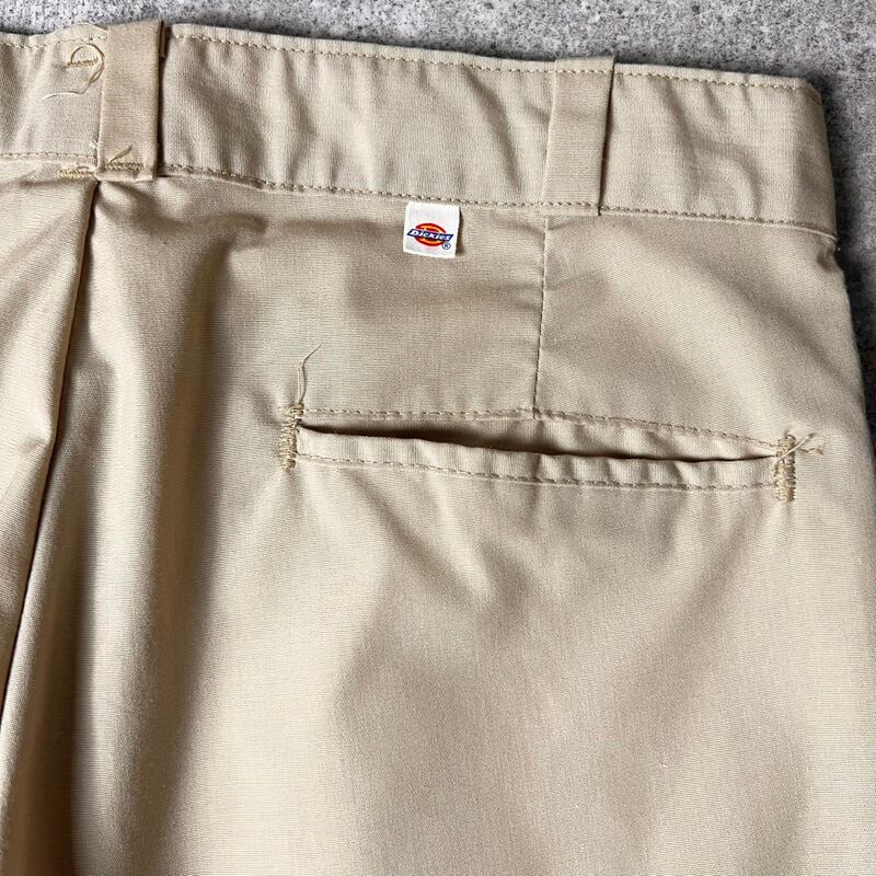 80s USA製 Dickies ノータック コットン ポリエステル チノ ワーク パンツ 32 34 / 80年代 アメリカ製 ビンテージ ディッキーズ カーキ チビタグ