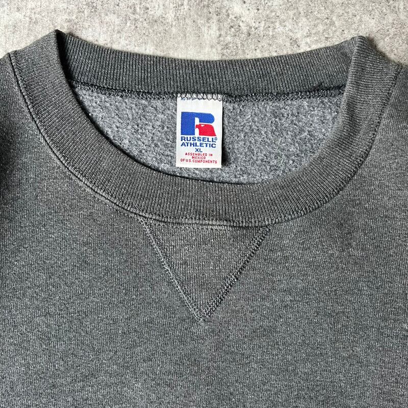90s RUSSELL 無地 前V スウェット トレーナー XL / 90年代 オールド ラッセル 裏起毛 ダーク グレー スエット