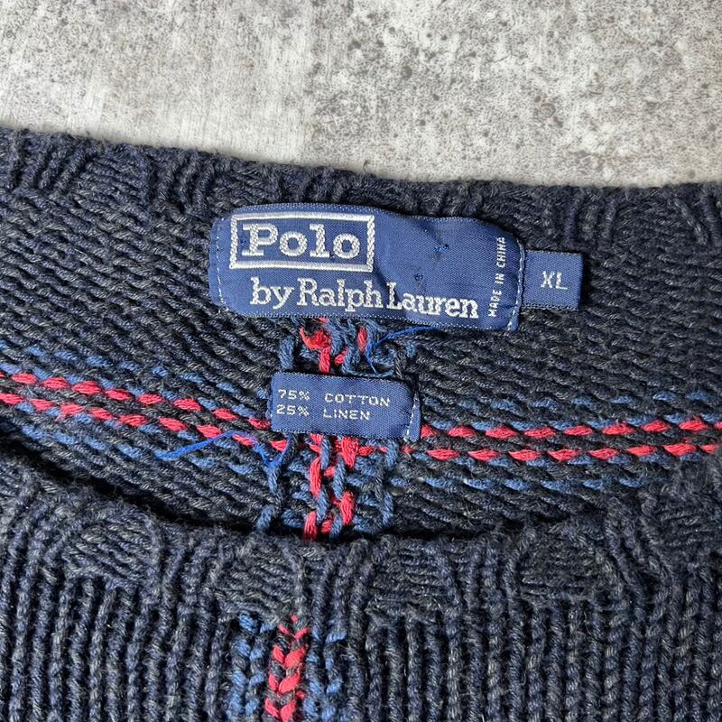 90s POLO RALPH LAUREN チェック コットン リネン 長袖 ニット セーター XL / 90年代 オールド ポロ ラルフローレン マルチカラー