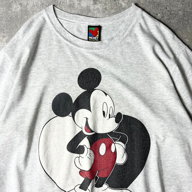 90s ディズニー オフィシャル ミッキー プリント 半袖 Tシャツ / 90年代 オールド 霜降り グレー ミッキーマウス キャラクター