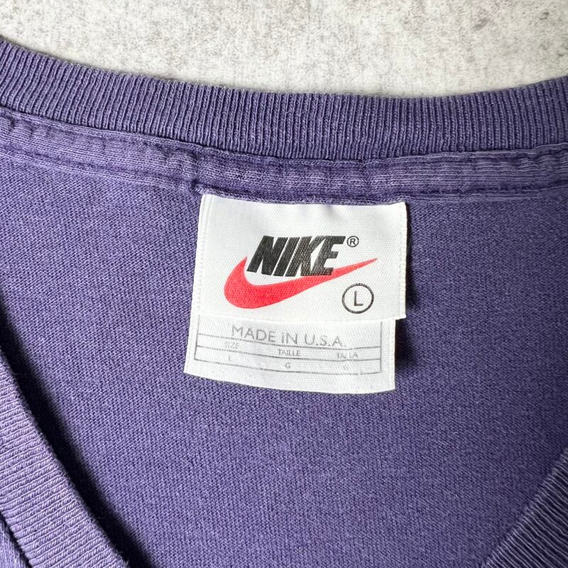 雰囲気系 90s USA製 NIKE ビッグ スウォッシュ ロゴ プリント 半袖 Tシャツ L / 90年代 アメリカ製 オールド ナイキ Vネック