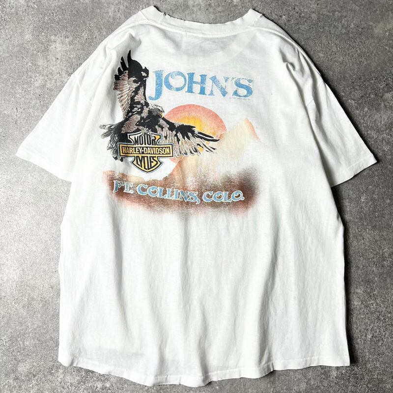 雰囲気系 90s USA製 HARLEY DAVIDSON オフィシャル 両面 イーグル プリント 半袖 Tシャツ L / 90年代 シングル ハーレー ダビッドソン