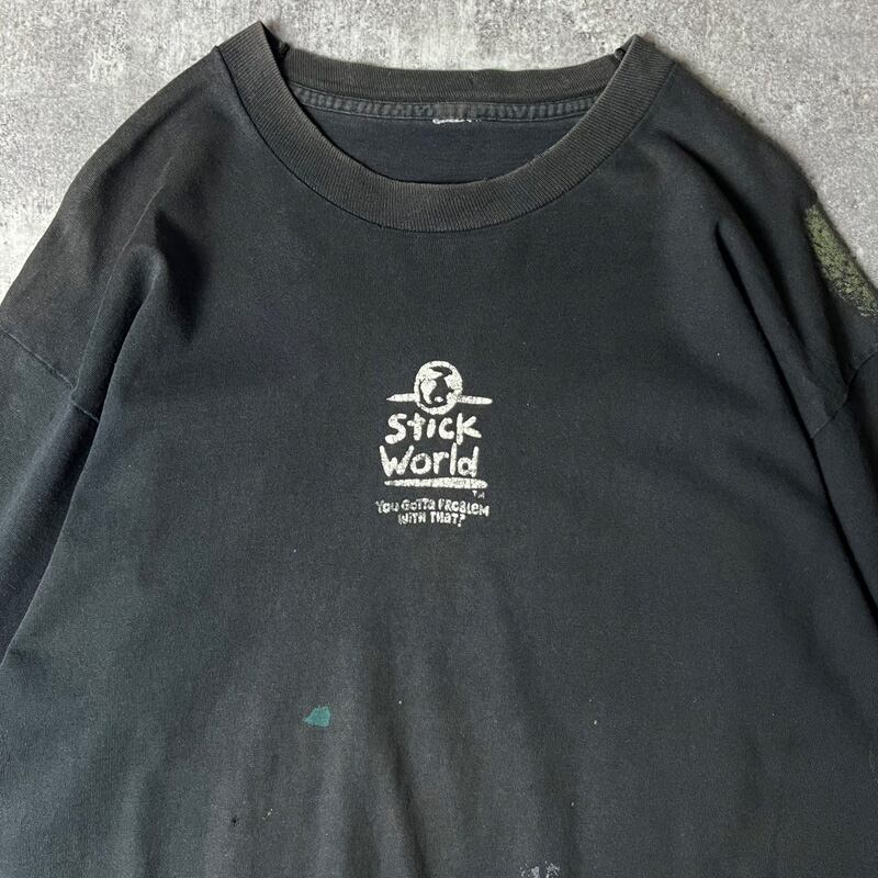 雰囲気系 90s stick world 棒人間 キャラクター 両面 プリント 半袖 Tシャツ / 90年代 オールド シングル ステッチ キャラT グランジ