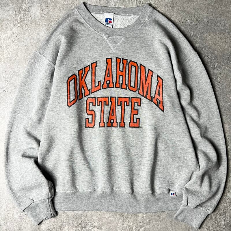 90s RUSSELL 2段 カレッジ プリント スウェット トレーナー L / 90年代 オールド ラッセル 霜降り グレー スエット