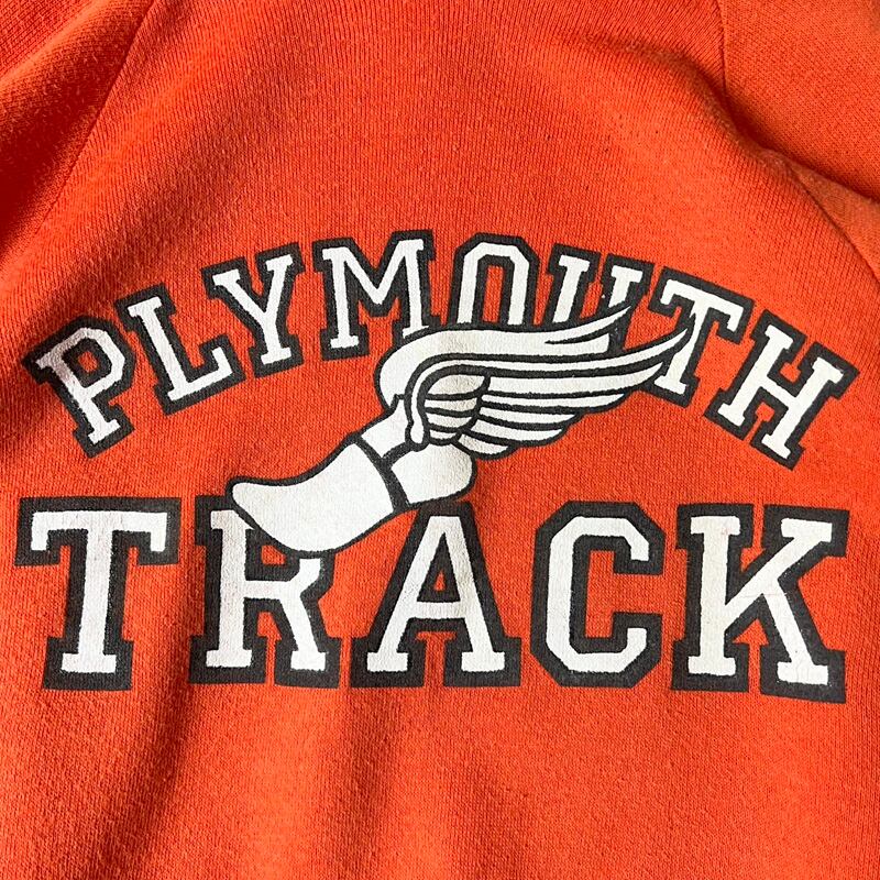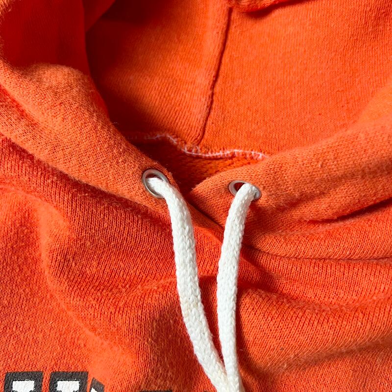 80s UNKNOWN ウイングフット 3段 カレッジ プリント スウェット フード パーカー / 80年代 ビンテージ トレーナー オレンジ