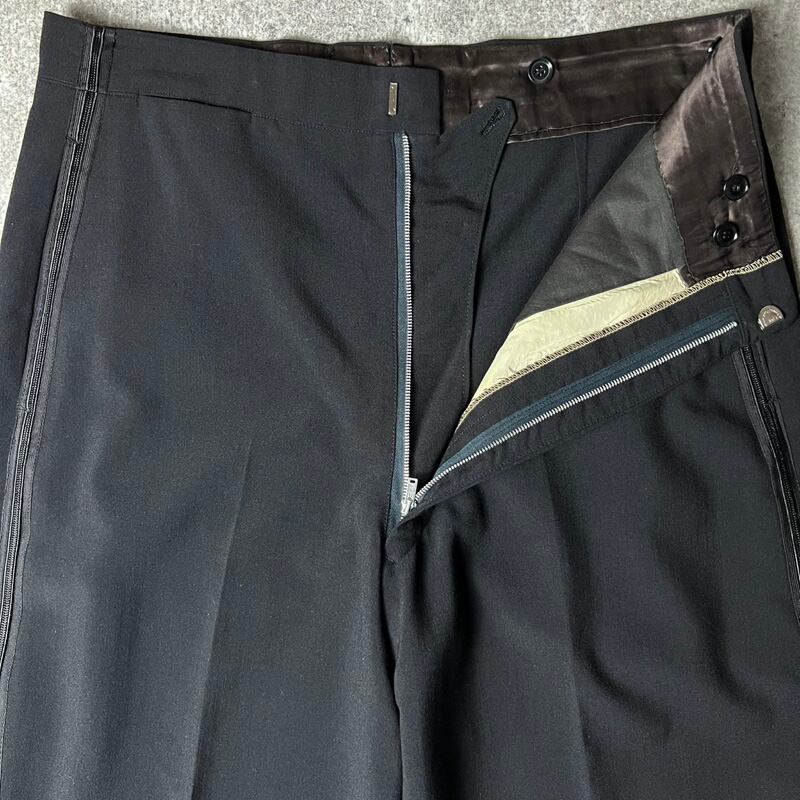 60s UNKNOWN 無地 サイドライン ノータック ウール スラックス パンツ 33 29 / 60年代 側章 ビンテージ TALON タロン ブラック 黒
