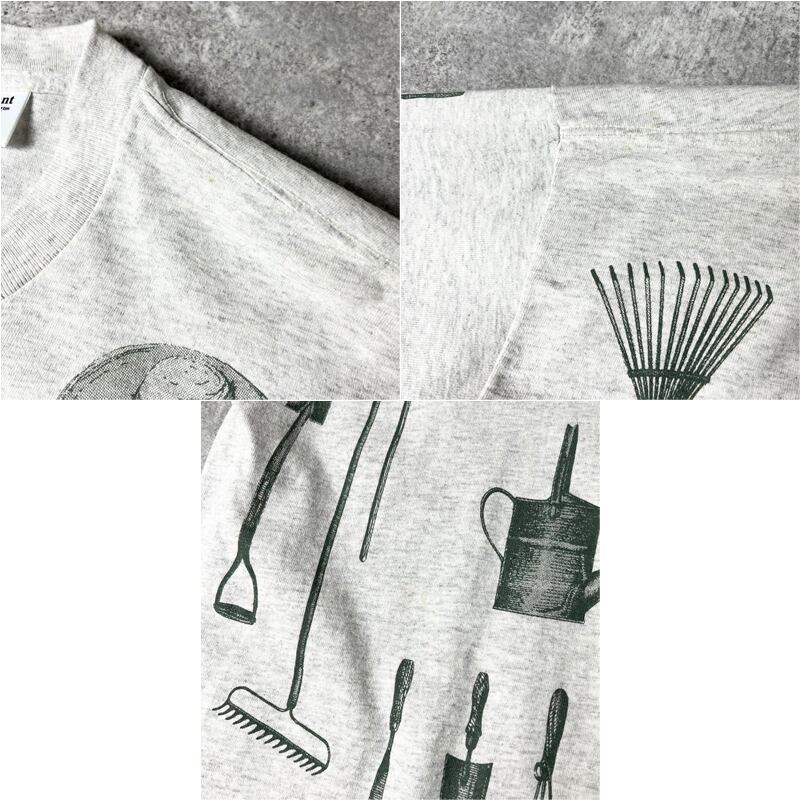 90s USA製 ツール 工具 総柄 アート プリント 半袖 Tシャツ L / 90年代 アメリカ製 オールド シングル ステッチ 霜降り グレー
