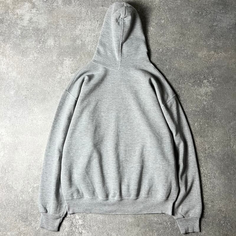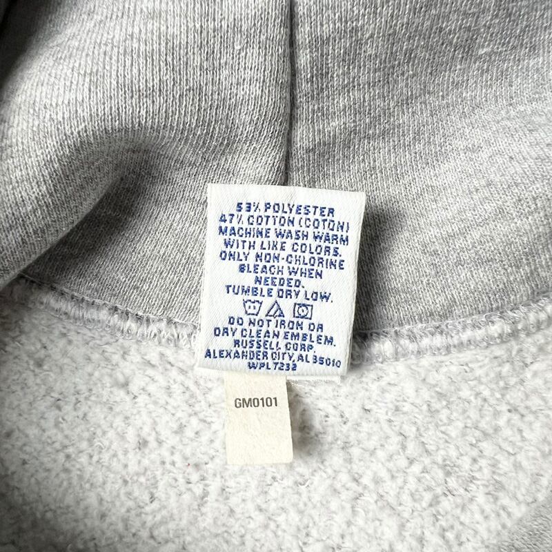 90s RUSSELL 3段 カレッジ プリント スウェット フード パーカー L / 90年代 オールド ラッセル 霜降り グレー トレーナー