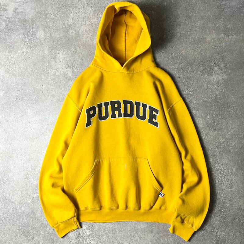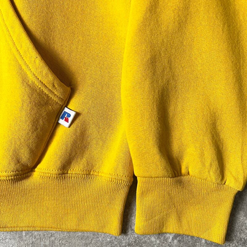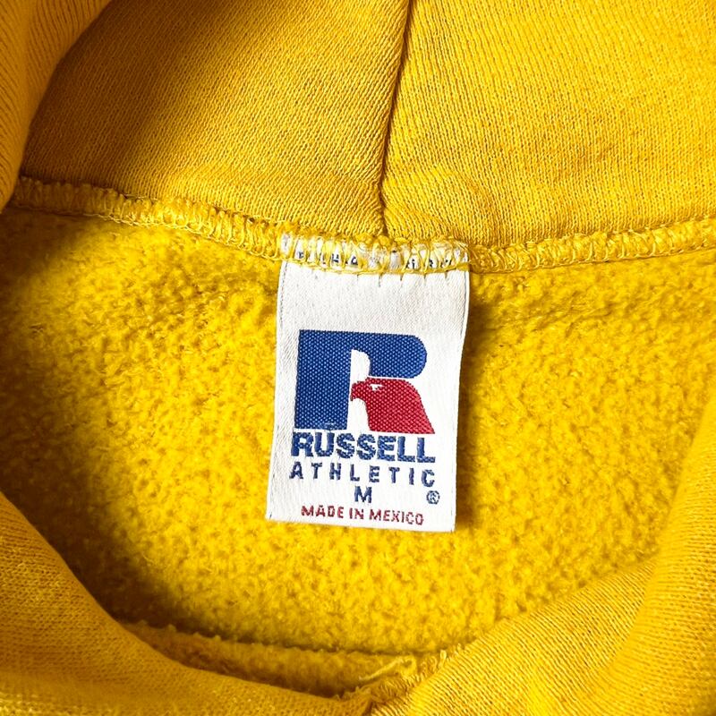 90s RUSSELL カレッジ プリント スウェット フード パーカー M / 90年代 メキシコ製 ラッセル トレーナー イエロー