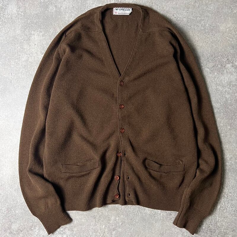 70s USA製 McGREGOR 無地 ウール ニット カーディガン M / 70年代 アメリカ製 マクレガー ビンテージ ポケット付き ブラウン セーター