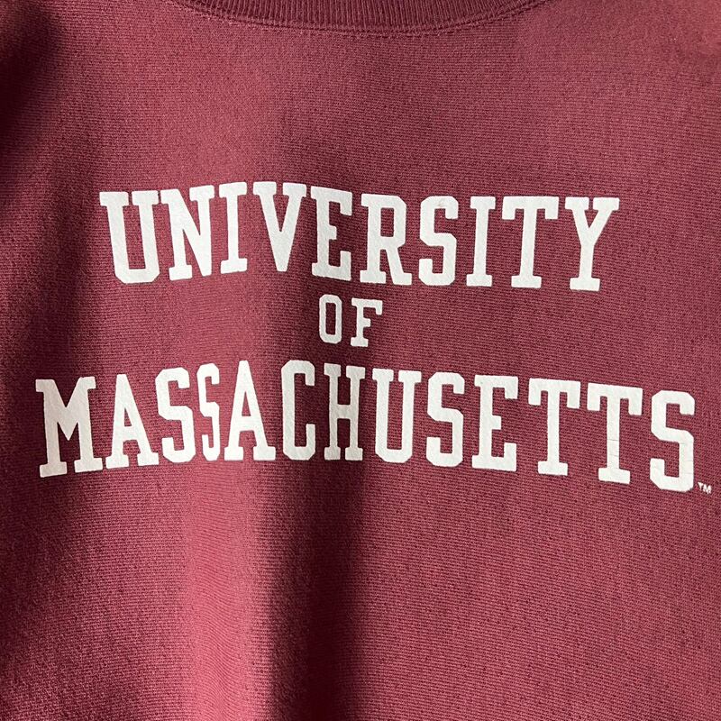 フロントに人気の高いマサチューセッツ大学の3段カレッジプリント入り