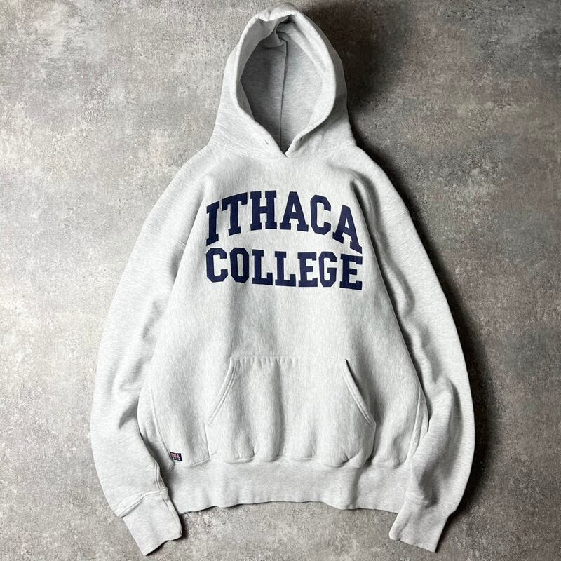 90s USA製 Cotton Exchange 2段 カレッジ プリント RWタイプ スウェット フード パーカー XXL / 90年代 アメリカ製 リバース トレーナー