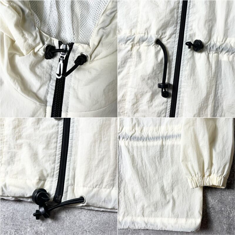 90s NIKE スウォッシュ 刺繍 フルジップ ナイロン パーカー ジャケット M / 90年代 オールド ナイキ スウッシュ フード ホワイト