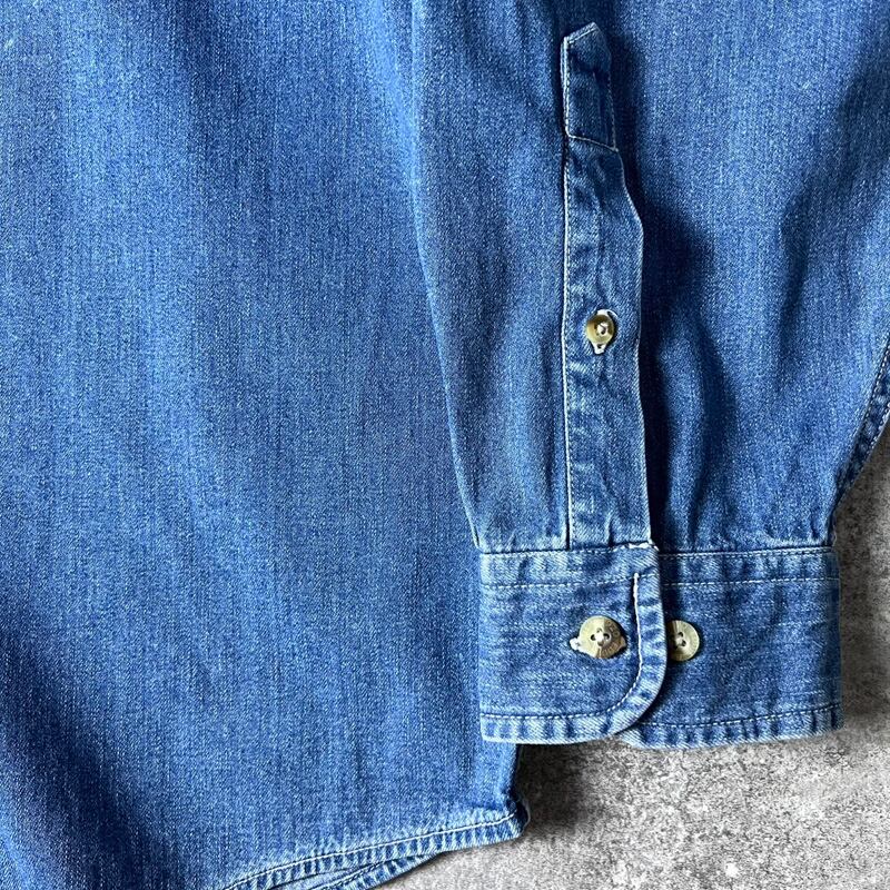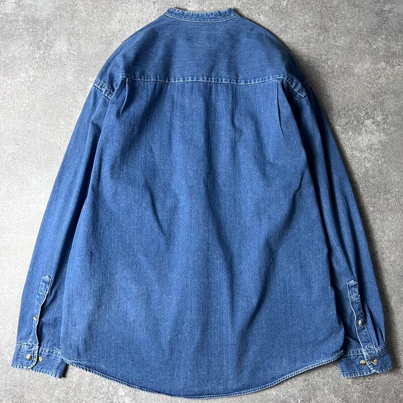 90s 白タグ Eddie Bauer ノーカラー 長袖 コットン デニム シャツ XL / 90年代 オールド エディーバウアー スタンドカラー バンドカラー