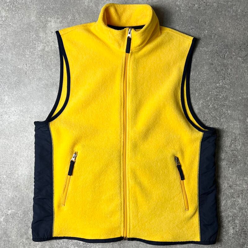 90s GAP フルジップ ナイロン 切替 フリース ベスト M / 90年代 オールド ギャップ ハイネック イエロー ネイビー 2トーン
