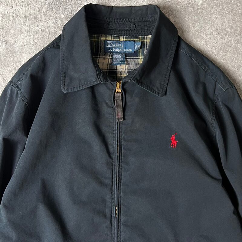 90s POLO RALPH LAUREN チェック ライナー コットン スイングトップ ジャケット M / 90年代 オールド ポロ ラルフローレン ブラック 黒