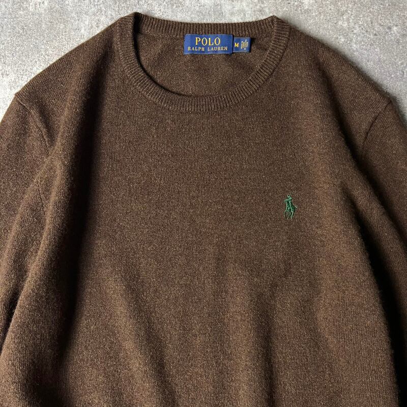 POLO RALPH LAUREN ポニー刺繍 メリノ ウール ニット セーター M / ポロ ラルフローレン ワンポイント ブラウン クルーネック