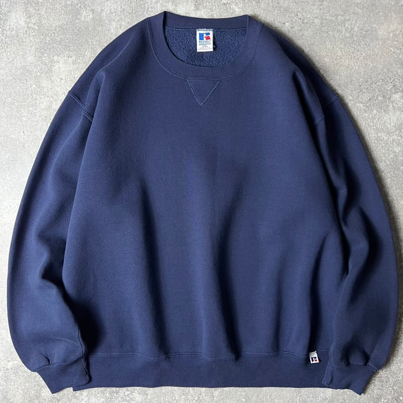 90s USA製 RUSSELL 無地 前V スウェット トレーナー XXL / 90年代 アメリカ製 オールド ラッセル 裏起毛 ネイビー 紺