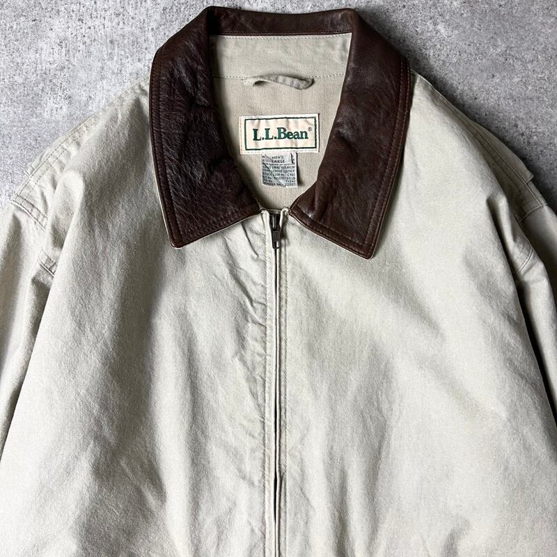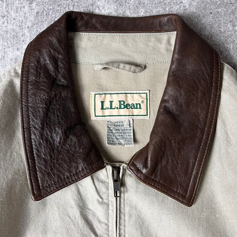 80s LLBean A-2 フライト タイプ レザー 切替 コットン ジャケット L / 80年代 ビンテージ LLビーン エルエルビーン ブルゾン