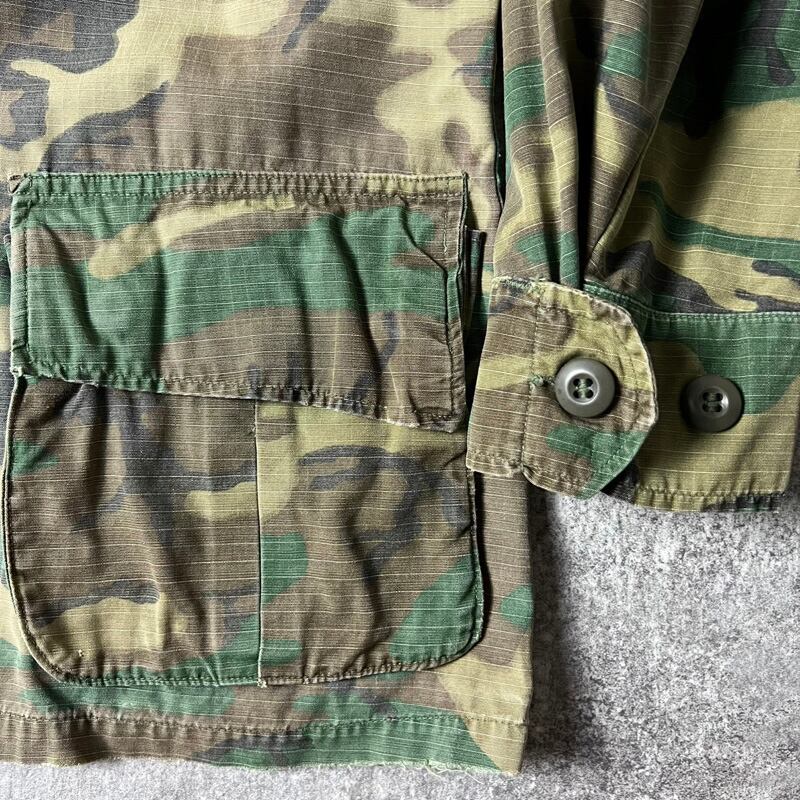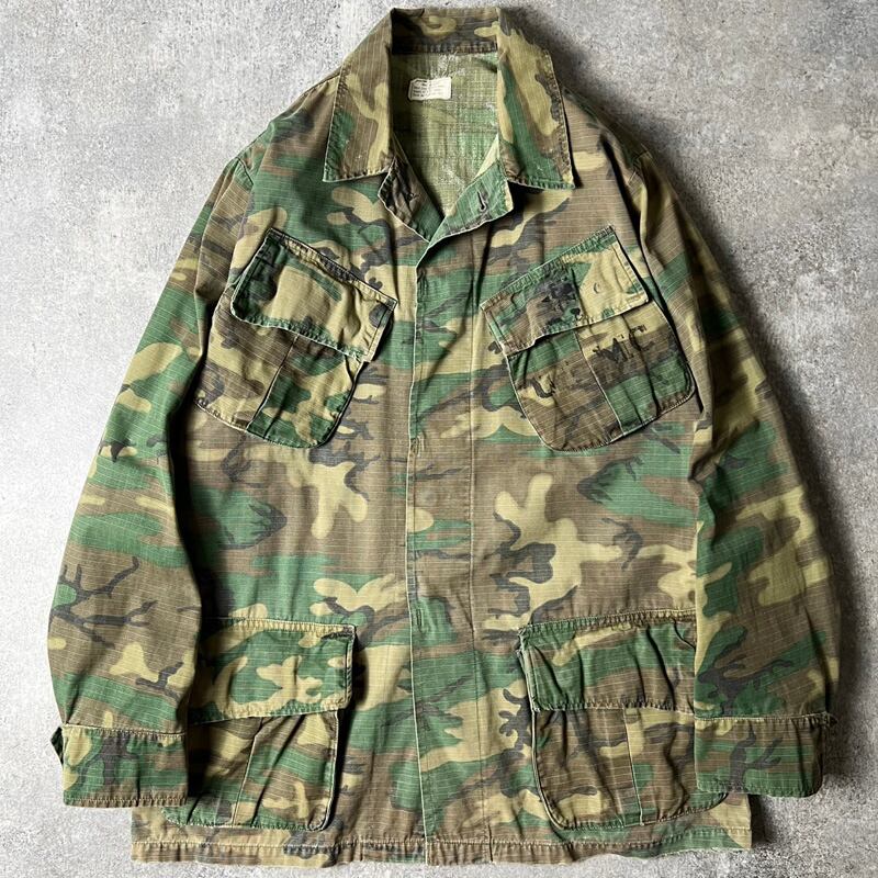 70s US ARMY 米軍実物 4th ERDL グリーンリーフ カモ ジャングルファティーグ ジャケット S-R / 70年代 ビンテージ ミリタリー USMC ステンシル