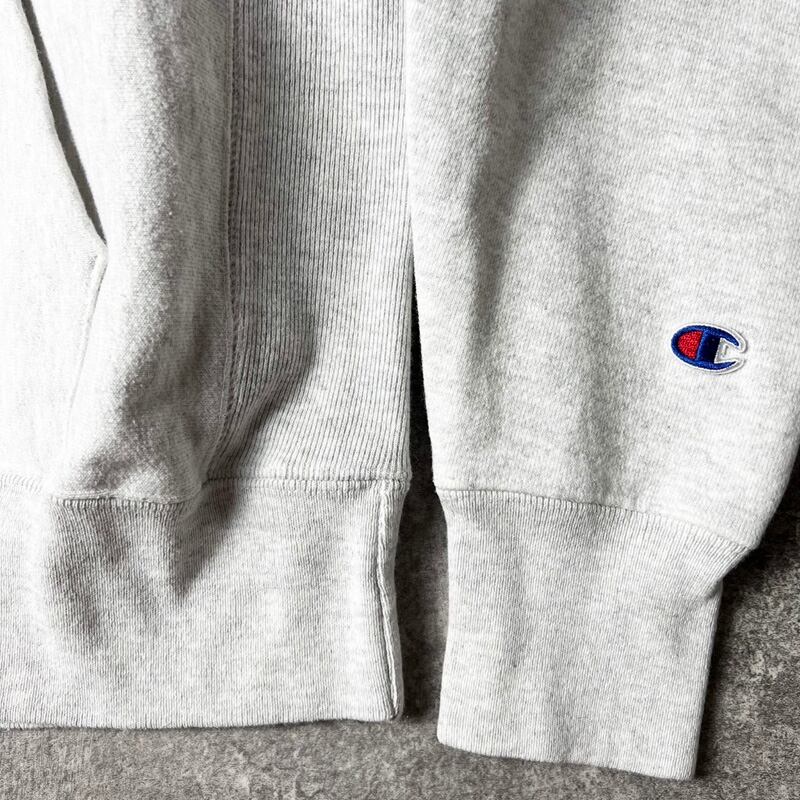 Champion カレッジ プリント リバースウィーブ スウェット フード パーカー M / 復刻 単色タグ チャンピオン 霜降り グレー