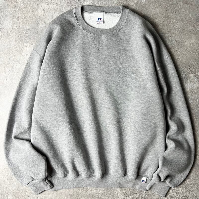 00s RUSSELL 無地 前V スウェット トレーナー XL / 00年代 オールド ラッセル 裏起毛 霜降り グレー スエット