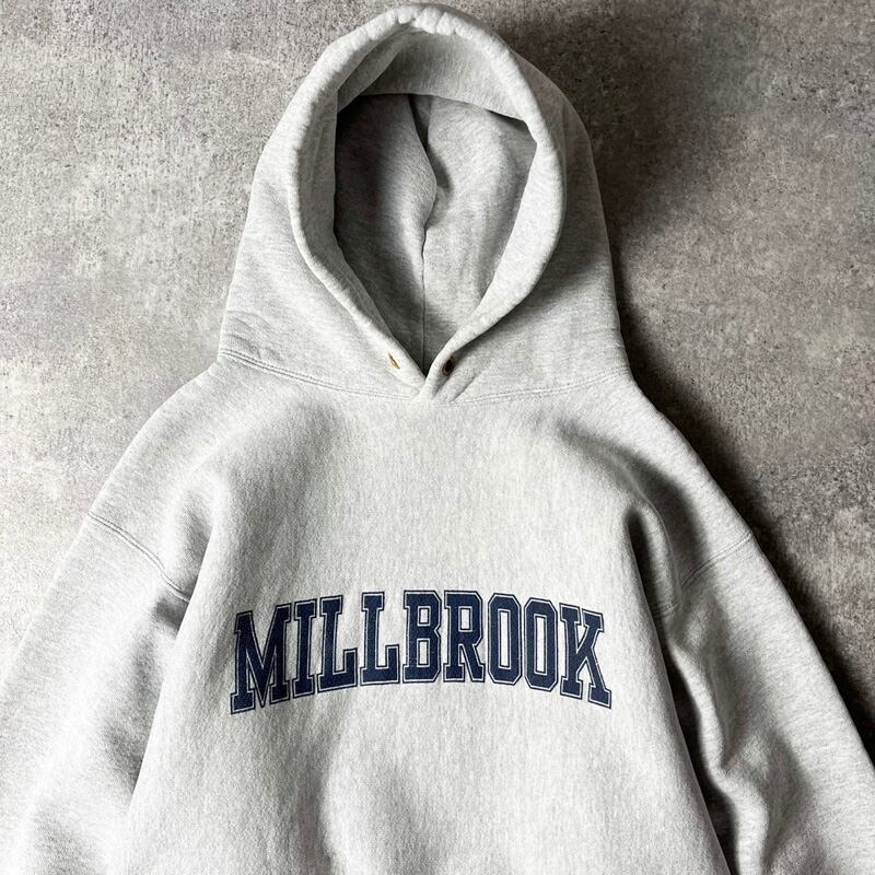 90s USA製 CAMBER カレッジ プリント RWタイプ スウェット フード パーカー / 90年代 アメリカ製 リバース トレーナー 霜降り グレー
