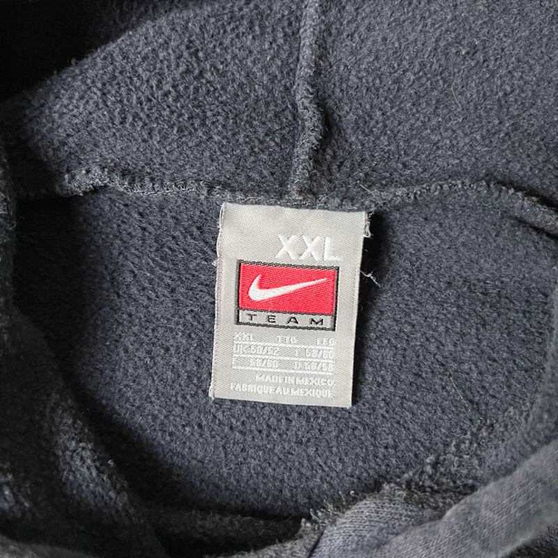 00s NIKE TEAM センター スウォッシュ 刺繍 スウェット フード パーカー XXL / 00年代 ナイキ トレーナー スウッシュ ブラック 黒