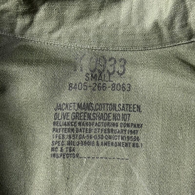 正式名称:JACKET, MAN'S, COTTON, SATEEN, OLIVE GREEN SHADE NO107