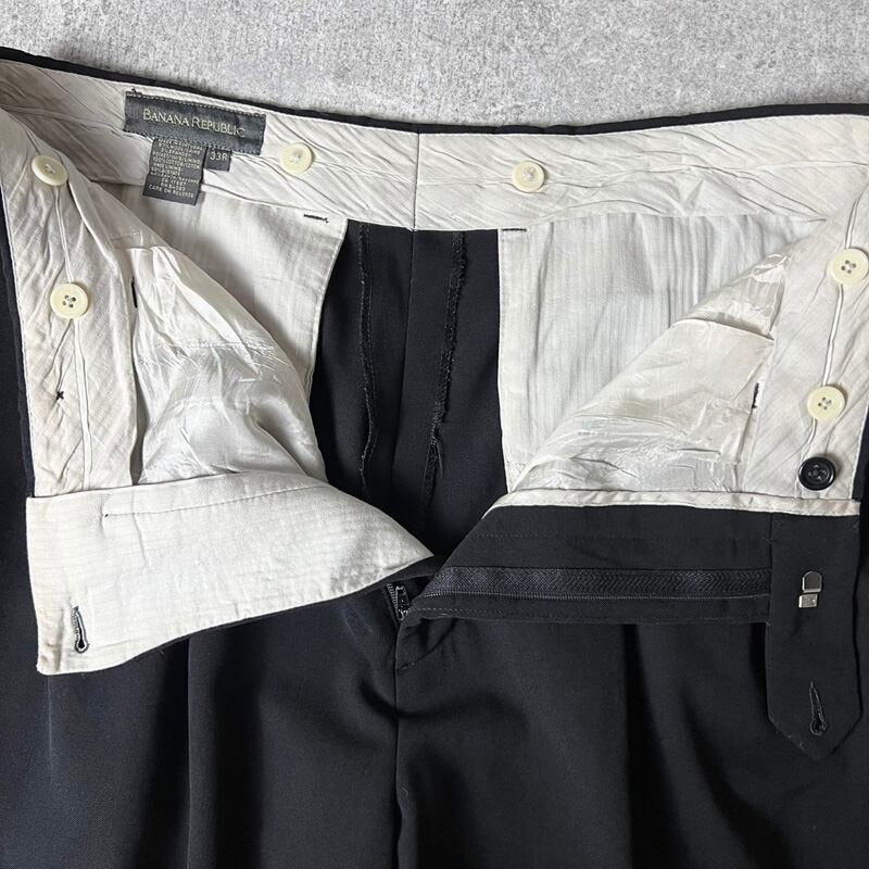 00s BANANA REPUBLIC 2タック ウール スラックス パンツ 33R / 00年代 バナナリパブリック オールド バナリパ ブラック 黒 ワイド