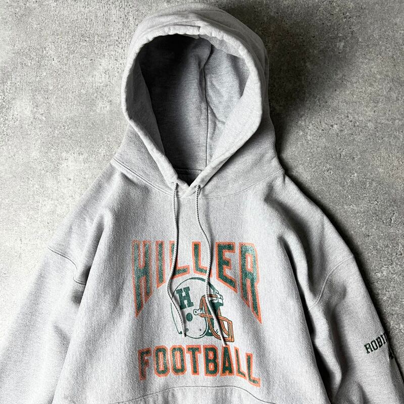 00s Champion 3段 カレッジ プリント プレミアム リバースウィーブ スウェット フード パーカー L / 00年代 オールド チャンピオン グレー